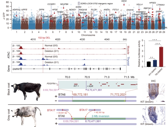 青藏高原黄牛环境适应和毛色相关的结构变异