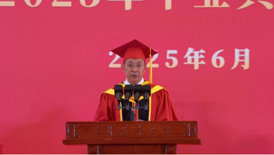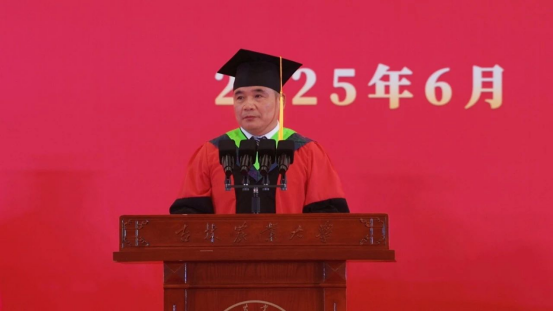 李启云代表全校教职工向顺利完成学业的同学们表示祝贺!向辛勤培育同学们的家长和教职员工们表示感谢!他深情回顾了2025届毕业生在校学习生活的点点滴滴,希望毕业生们不仅要做实干家,更要当“新农人”,主动拥抱生物技术、人工智能等新技术,自觉投入到农业科技自立自强的宏伟事业中。要做“会扎根的AI”,既有算力、更有定力。要当“懂温差的蘑菇”,既能耐住寂寞、也会把握温差。要成“会共生的命运共同体”,既当大树、也作土壤。在顺境中保持清醒,在逆境中保持旺盛的生命力,以开放包容之心,搭建携手共进的舞台。