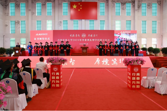 6月25日,学校在体育馆隆重举行吉林农业大学2025年毕业典礼暨学位授予仪式。学校党委书记张殿锋,校长李启云,党委副书记徐文生,纪委书记、纪检监察组组长、党委副书记(兼)王宏,副校长吕文发,党委副书记周春国,副校长孙文献,副校长马红霞,副校长周春涛出席典礼。