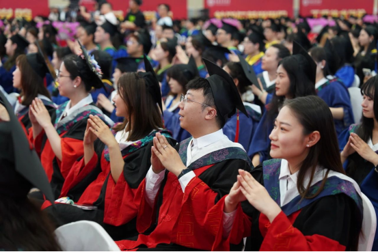 学位授予仪式上,学校领导、各学院负责人为毕业生逐一拨穗,颁发证书,并与毕业生合影留念。部分毕业生家长、亲友在现场见证重要时刻。