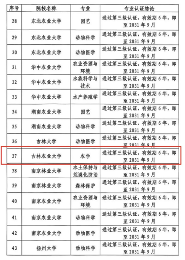 日前,教育部教育质量评估中心发布公告,我校农学专业等70个农学门类专业通过专业三级认证,这是我国首批农学门类专业认证,吉林省仅有我校和吉林大学2所高校上榜。
