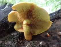 校园分布的重要食药用菌除了猴头以外,还有榆耳Gloeostereum incarnatum S.Ito & S.Imai、冬菇Flammulina velutipes(Curtis)Singer、毛头鬼伞Coprinus comatus(O.F.Müll.)Pers.、血红铆钉菇Chroogomphus rutilus(Schaeff.)O.K.Mill.、羊肚菌Morchella esculenta(L.)Pers.、荷叶离褶伞Lyophyllum decastes(Fr. ) Sing.、糙皮侧耳Pleurotus ostreatus(Jacq.)P.Kumm.、黑木耳Auricularia heimuer F.Wu et al.、裂褶菌Schizophyllum commune Fr.、杂色云芝Trametes versicolor(L.)Lloyd、大马勃Calvatia gigantea(Batsch)Lloyd、甚至台湾块菌Tuber formosanum H.T.Hu & Y.Wang也光顾了这一美丽的校园(见下图,图文顺序一致)。丰富的蘑菇资源常常成为师生们的研究材料,有的已被成功驯化栽培。