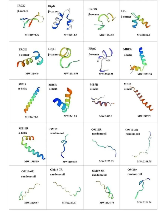 部分抗菌肽的二级结构图