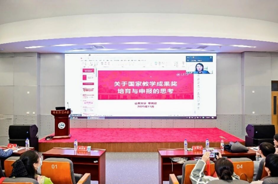 山东大学本科生院副院长、全国新文科教育研究中心办公室执行主任申树欣作“关于国家教学成果奖培育与申报的思考”专题辅导报告