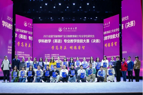 11月14日至16日,2025全国“田家炳杯”全日制教育硕士专业学位研究生学科教学(英语)专业教学技能大赛(决赛)在云南师范大学举行。我校外国语学院2023级学科教学(英语)专业教育硕士孙宛情荣获一等奖,指导教师王鹤获评“优秀指导教师”,实现我校参加该赛事以来的历史性突破。