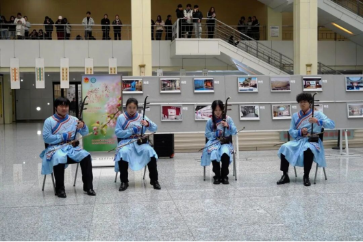 3月18日,学校在图书馆举办学生社团通识选修课程艺术展暨2026年“春之声”音乐会。校领导李启云、王宏、吕文发、周春国、孙文献、马红霞参观活动。